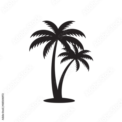 Palm tree silhouette illustration with arching fronds on a white background. EPS 10.