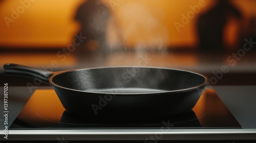 Pan emits steam on modern stovetop, highlighting culinary prepar