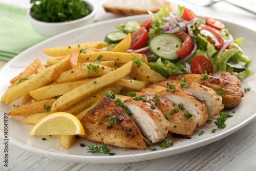 Pan Roasted Chicken With French Fries and Fresh Salad Served Hot Generative AI