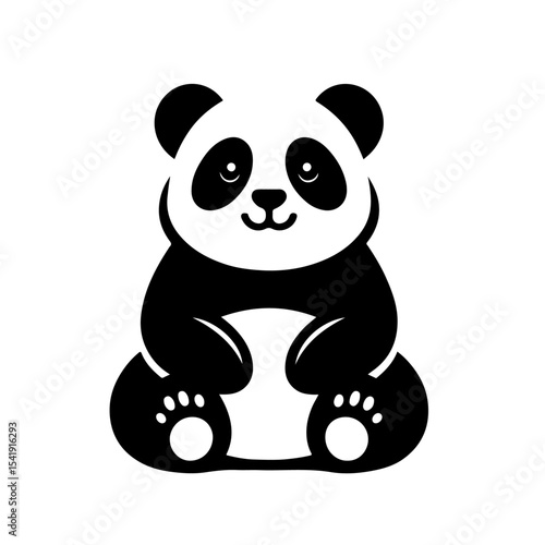 Panda Icon – Standing Black and White Cartoon Bear with Raised Arms on White Background