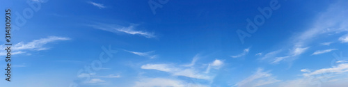 Panorama sky with cloud on a sunny day. Beautiful cirrus cloud. Panoramic image.
