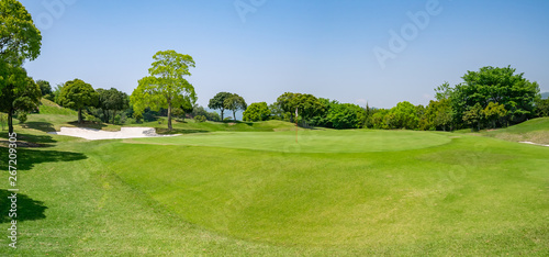 Panorama View of Golf Course with beautiful green. Golf is a sport to play on the turf.