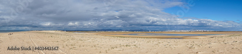 panorama view of the beach at Faro Island in Portugal
