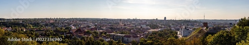 Panorama vom Berg der drei Kreuze über das Stadtzemtrum von Vilnius mit Altstadt, Fernsehturm und Gediminas-Burg, Litauen