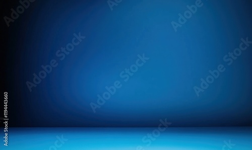 Panoramic abstract blue wall background for product presentation with sunlight and blurred shadows wall. Podium studio background
