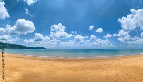 Panoramic Beach Scene With Golden Sand And Clear Water