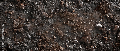 Panoramic close-up, high detail scan of wet dirt material, Generative AI