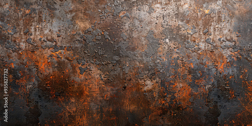 Panoramic grunge rusted metal texture, rust and oxidized metal background. Old metal iron panel.