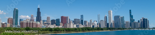 panoramic skyline riverfromt view of chicago during daylight on a sunny day