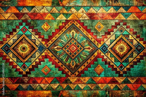 Panoramic Tribal Geometric Grunge Pattern Background Texture