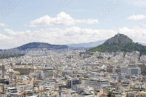 Panoramic view of mount Lycabettus and surrounding cityscape buildings from Athens Acropolis, Greece