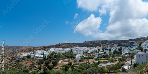 Panoramic view of Pyrgos (Panormos) village in Tinos island, Greece