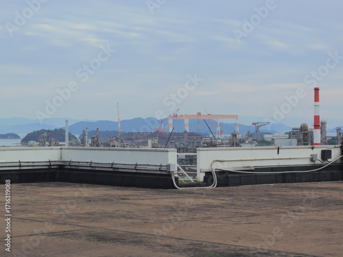 Panoramic view of the industrial area from the rooftop of the nearby building.