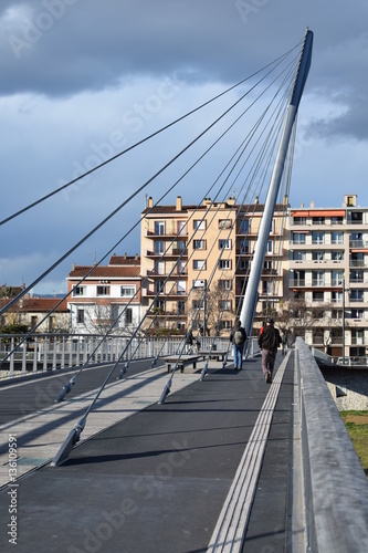 Panoramique de la passerelle piétons et cyclistes sur la rivière Têt.