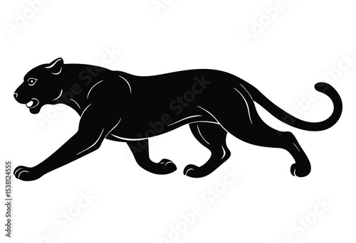 Panther running Silhouette Vector illustration, Running panther jungle simple icon flat design.