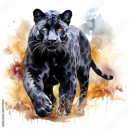 Panthera. Black cougar. Black wild cat clipart. Watercolor illustration. Generative AI. Detailed illustration.