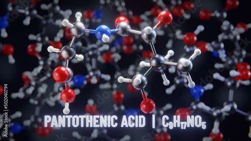 Pantothenic acid (Vitamin B5) molecular structure. 3D illustration