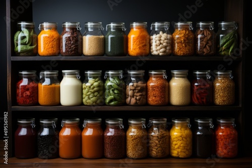 Pantry stocked with a variety of international food products and spices, Generative AI