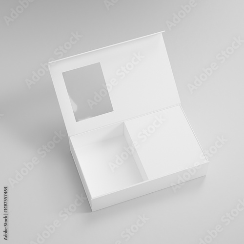 paper box packaging mockup, luxury gift box with window display, white paperboard rectangular packaging, square shape cardboard box with clear pvc window, elegent perfume packaging