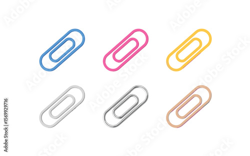 Paper Clips Set: Colored and Metallic Clip Collection on White Background