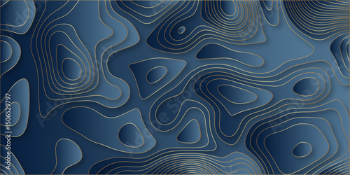 paper cut 3d render topography abstract, beautiful blue Background. geometric map relief texture with curved layers and shadow. Realistic papercut decoration textured with wavy vector design.