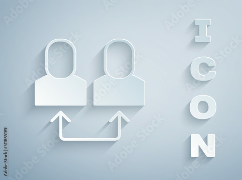 Paper cut Exchange work icon isolated on grey background. Information exchange between people. Employee or people Replacement or swap position concept. Paper art style. Vector