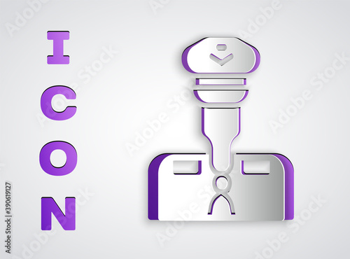 Paper cut Pilot icon isolated on grey background. Paper art style. Vector.
