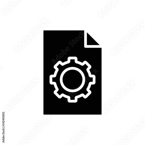 Paper document glyph icon illustration with gear. icon related to document in developing, file in developing. Simple vector design editable. Pixel perfect at 32 x 32