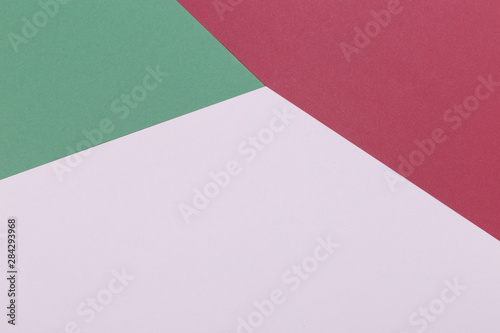 Paper green, burgundy, white empty background, geometrically located. Color blank for presentations, copy space.