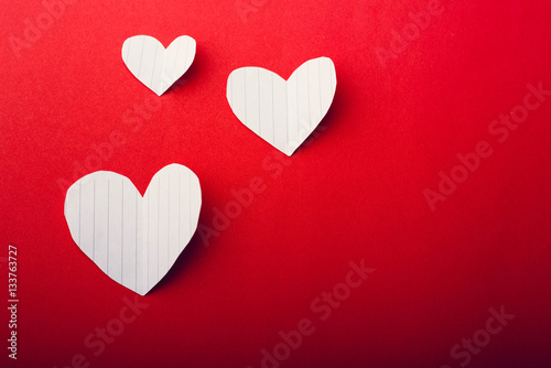 Paper heart on red background