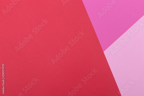 Paper pink, red, pastel empty background, geometrically located. Color blank for presentations, copy space.
