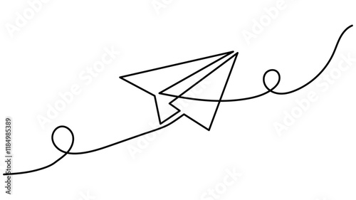 Paper plane Continuous One Line Drawing Icon for Modern Design, Paper plane one line drawing Vector illustration