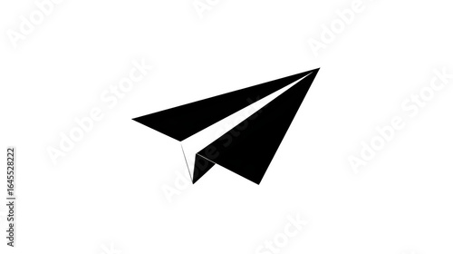 Paper plane icon representing send, black filled vector, transparent background, --ar 16:9