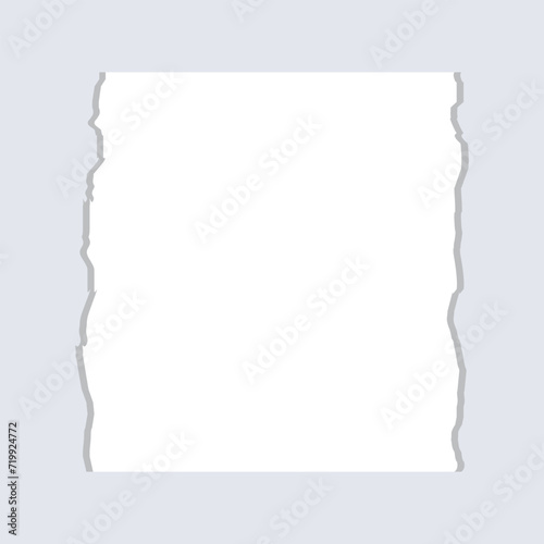 Paper ripped message, torn paper edge, Torn sheets of paper. white paper sheets isolated on grey background. Vector illustration of torn blank pages with uneven texture edges.