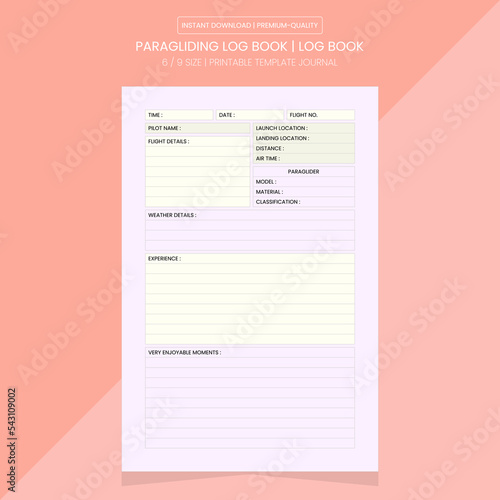 Paragliding Log Book | Paragliding Log Journal Printable Template