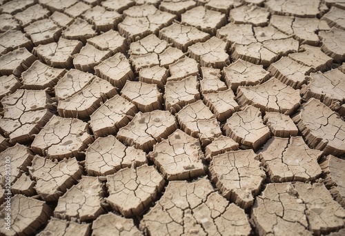 Parched earth displays deep cracks, illustrating the severe effects of drought under the harsh sun.