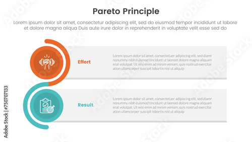 pareto principle comparison or versus concept for infographic template banner with rectangle box stack and circle wave with two point list information