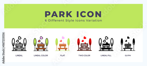 Park icon set with different styles. Icons designed in filled. outline. flat. glyph and line colored.