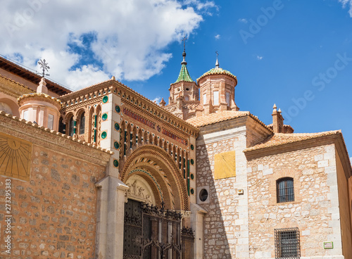 Part d the facade of the cathedral of Teruel, in mudejar style, Aragon, Spain