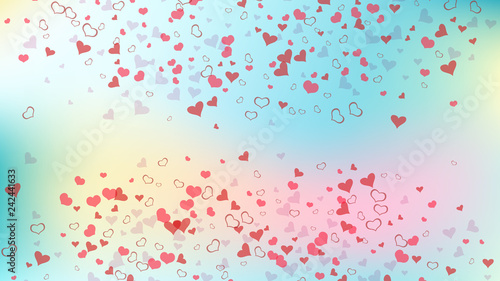 Part of the design of wallpaper, textiles, packaging, printing, holiday invitation for wedding. Red on Gradient background Vector. Romantic background. Red hearts of confetti are flying.
