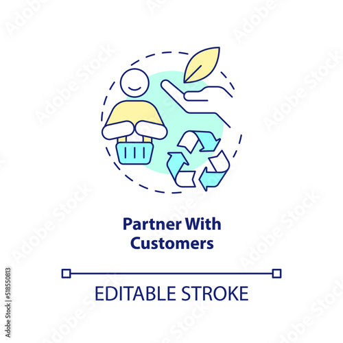 Partner with customers concept icon. Transforming business to net zero abstract idea thin line illustration. Isolated outline drawing. Editable stroke. Arial, Myriad Pro-Bold fonts used