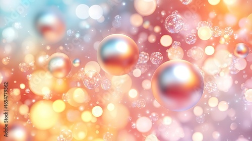 Party-themed stock photo with multicolored matte helium balloons, glowing softly on a blurred pastel background