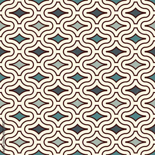 Paseo abstract ornament. Oriental traditional pattern. Maroccan mosaic tiles. Repeated geometric figures wallpaper. Arabesque digital paper, textile print. Seamless surface design. Vector illustration