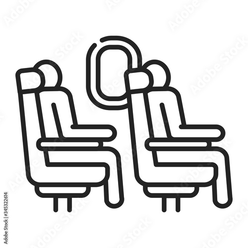 Passengers are sitting in the seats on the plane black line icon. Airplane economy class interior. Pictogram for web page, mobile app, promo. UI UX GUI design element. Editable stroke