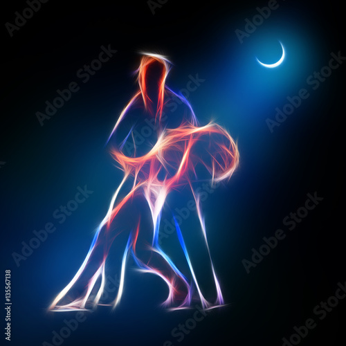 Passionate couple dancing glowing concept illustration