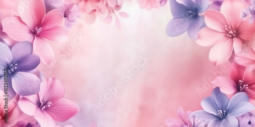 Pastel abstract floral background with copy space. Soft-style pink and violet flowers suitable for a wedding or Valentine's Day card.