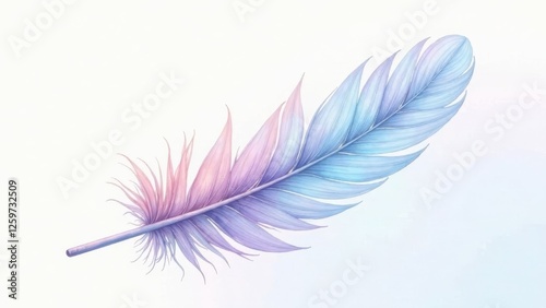 Pastel Avian Plume A Delicate Watercolor Illustration of a Single Feather with Gradient Hues