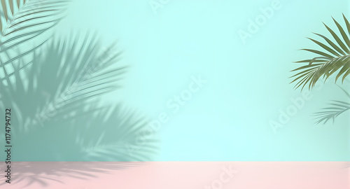Pastel Background with Palm Leaf Shadows and Copy Space