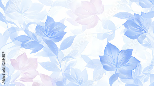 Pastel blue and pink flower pattern background; ideal for website banners, textile prints, or packaging