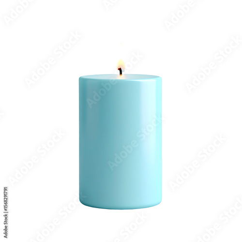 Pastel Blue Candle with Soft Flame on Transparent Backdrop in 3D Rendering